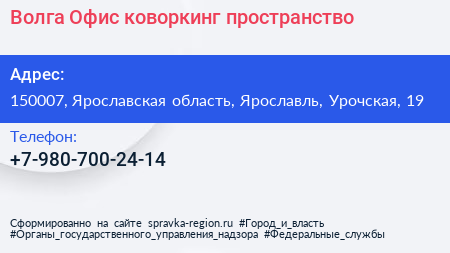 Волга Офис, коворкинг-пространство по адресу 150007, Ярославская область, Ярославль, Урочская, 19 в дальнейшем Организация, размещена в следующих категориях:
