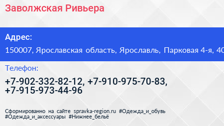Заволжская Ривьера по адресу 150007, Ярославская область, Ярославль, Парковая 4-я, 40 в дальнейшем Организация, размещена в следующих категориях:
