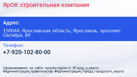 ЯрОК, строительная компания по адресу 150044, Ярославская область, Ярославль, проспект Октября, 89 в дальнейшем Организация, размещена в следующих категориях:
