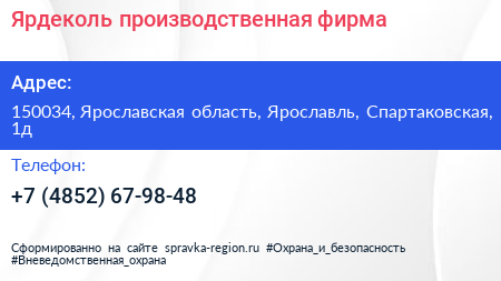 Ярдеколь, производственная фирма по адресу 150034, Ярославская область, Ярославль, Спартаковская, 1д в дальнейшем Организация, размещена в следующих категориях: