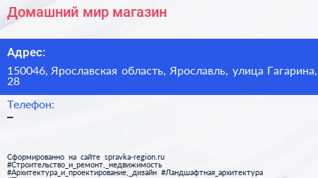 Домашний мир, магазин по адресу 150046, Ярославская область, Ярославль, улица Гагарина, 28 в дальнейшем Организация, размещена в следующих категориях: