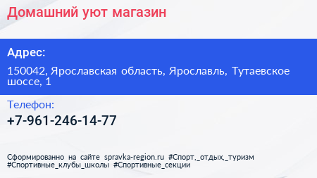Домашний уют, магазин по адресу 150042, Ярославская область, Ярославль, Тутаевское шоссе, 1 в дальнейшем Организация, размещена в следующих категориях: