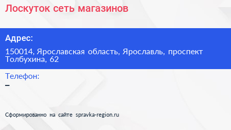 Лоскуток, сеть магазинов по адресу 150014, Ярославская область, Ярославль, проспект Толбухина, 62 в дальнейшем Организация, размещена в следующих категориях: