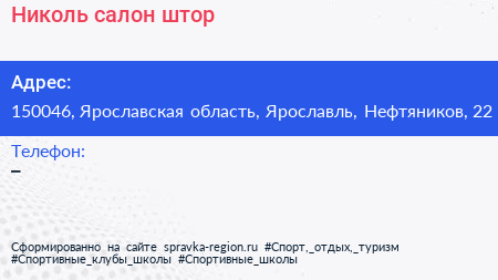 Николь, салон штор по адресу 150046, Ярославская область, Ярославль, Нефтяников, 22 в дальнейшем Организация, размещена в следующих категориях: