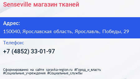 Senseville, магазин тканей по адресу 150040, Ярославская область, Ярославль, Победы, 29 в дальнейшем Организация, размещена в следующих категориях: