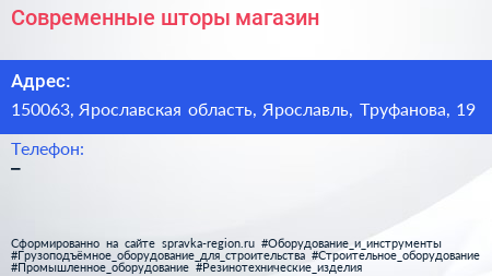 Современные шторы, магазин по адресу 150063, Ярославская область, Ярославль, Труфанова, 19 в дальнейшем Организация, размещена в следующих категориях: