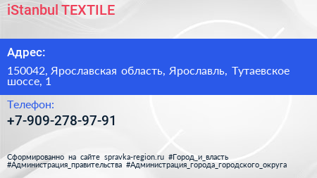 iStanbul TEXTILE по адресу 150042, Ярославская область, Ярославль, Тутаевское шоссе, 1 в дальнейшем Организация, размещена в следующих категориях: