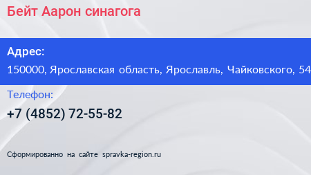 Бейт Аарон, синагога по адресу 150000, Ярославская область, Ярославль, Чайковского, 54 в дальнейшем Организация, размещена в следующих категориях: