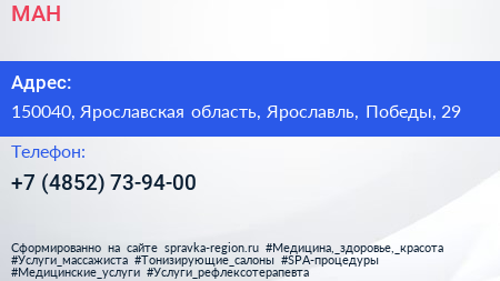 МАН по адресу 150040, Ярославская область, Ярославль, Победы, 29 в дальнейшем Организация, размещена в следующих категориях:
