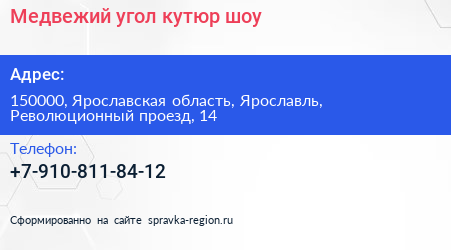 Медвежий угол, кутюр-шоу по адресу 150000, Ярославская область, Ярославль, Революционный проезд, 14 в дальнейшем Организация, размещена в следующих категориях: