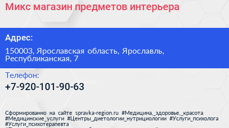 Микс, магазин предметов интерьера по адресу 150003, Ярославская область, Ярославль, Республиканская, 7 в дальнейшем Организация, размещена в следующих категориях: