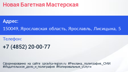 Новая Багетная Мастерская по адресу 150049, Ярославская область, Ярославль, Лисицына, 5 в дальнейшем Организация, размещена в следующих категориях: