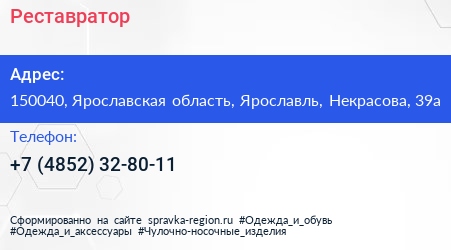 Реставратор по адресу 150040, Ярославская область, Ярославль, Некрасова, 39а в дальнейшем Организация, размещена в следующих категориях:
