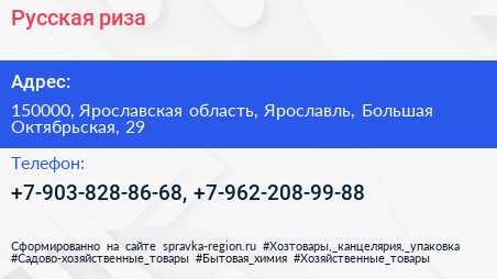 Русская риза по адресу 150000, Ярославская область, Ярославль, Большая Октябрьская, 29 в дальнейшем Организация, размещена в следующих категориях: