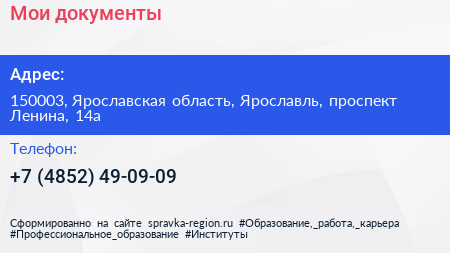 Мои документы по адресу 150003, Ярославская область, Ярославль, проспект Ленина, 14а в дальнейшем Организация, размещена в следующих категориях:
