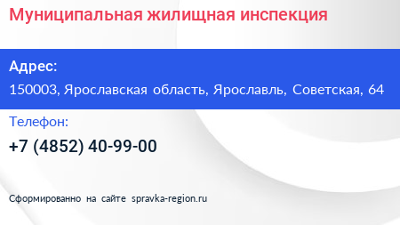 Муниципальная жилищная инспекция по адресу 150003, Ярославская область, Ярославль, Советская, 64 в дальнейшем Организация, размещена в следующих категориях: