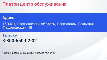 Платон, центр обслуживания по адресу 150001, Ярославская область, Ярославль, Большая Фёдоровская, 48 в дальнейшем Организация, размещена в следующих категориях: