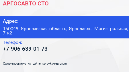 АРГОСАВТО, СТО по адресу 150049, Ярославская область, Ярославль, Магистральная, 7 к2 в дальнейшем Организация, размещена в следующих категориях: