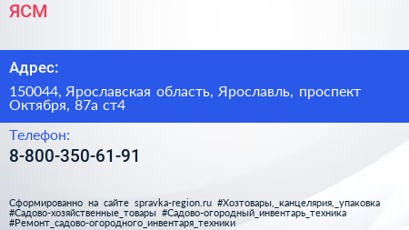 ЯСМ по адресу 150044, Ярославская область, Ярославль, проспект Октября, 87а ст4 в дальнейшем Организация, размещена в следующих категориях: