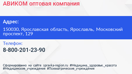 АВИКОМ, оптовая компания по адресу 150030, Ярославская область, Ярославль, Московский проспект, 129 в дальнейшем Организация, размещена в следующих категориях: