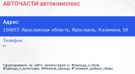 АВТОЧАСТИ, автокомплекс по адресу 150057, Ярославская область, Ярославль, Калинина, 18 в дальнейшем Организация, размещена в следующих категориях:
