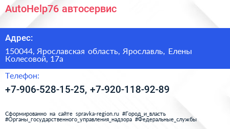 AutoHelp76, автосервис по адресу 150044, Ярославская область, Ярославль, Елены Колесовой, 17а в дальнейшем Организация, размещена в следующих категориях:
