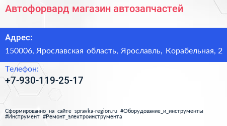 Автофорвард, магазин автозапчастей по адресу 150006, Ярославская область, Ярославль, Корабельная, 2 в дальнейшем Организация, размещена в следующих категориях: