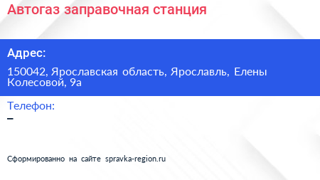 Автогаз, заправочная станция по адресу 150042, Ярославская область, Ярославль, Елены Колесовой, 9а в дальнейшем Организация, размещена в следующих категориях: