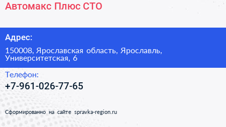 Автомакс Плюс, СТО по адресу 150008, Ярославская область, Ярославль, Университетская, 6 в дальнейшем Организация, размещена в следующих категориях: