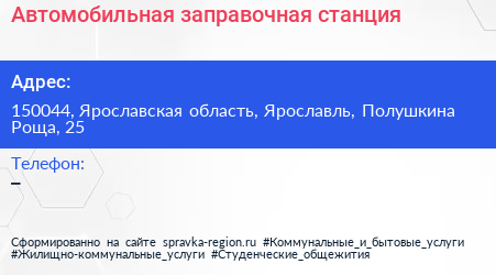 Автомобильная заправочная станция по адресу 150044, Ярославская область, Ярославль, Полушкина Роща, 25 в дальнейшем Организация, размещена в следующих категориях: