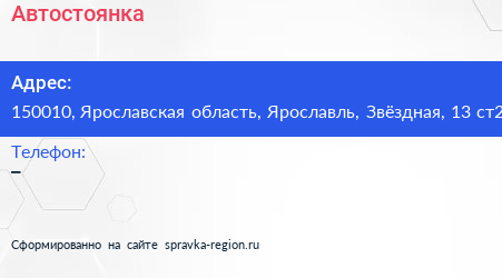 Автостоянка по адресу 150010, Ярославская область, Ярославль, Звёздная, 13 ст2 в дальнейшем Организация, размещена в следующих категориях: