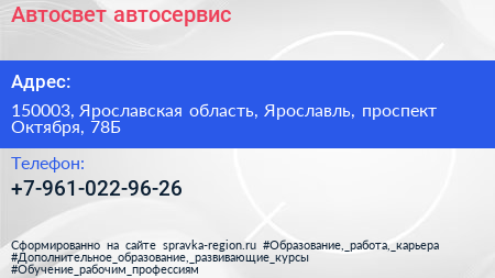 Автосвет, автосервис по адресу 150003, Ярославская область, Ярославль, проспект Октября, 78Б в дальнейшем Организация, размещена в следующих категориях: