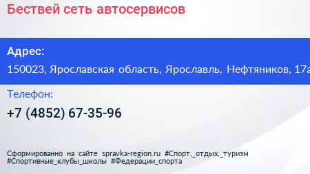 Бествей, сеть автосервисов по адресу 150023, Ярославская область, Ярославль, Нефтяников, 17а в дальнейшем Организация, размещена в следующих категориях: