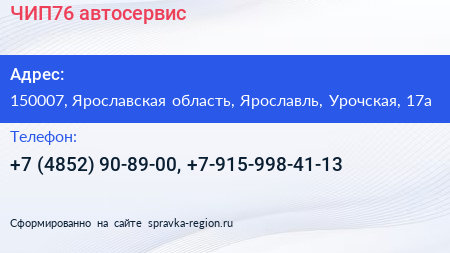 ЧИП76, автосервис по адресу 150007, Ярославская область, Ярославль, Урочская, 17а в дальнейшем Организация, размещена в следующих категориях:
