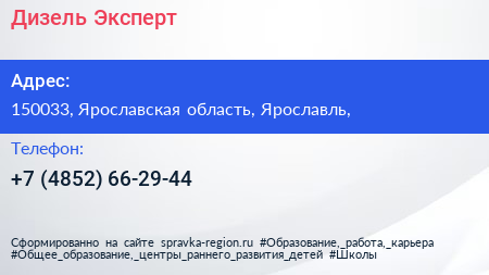 Дизель Эксперт по адресу 150033, Ярославская область, Ярославль, в дальнейшем Организация, размещена в следующих категориях: