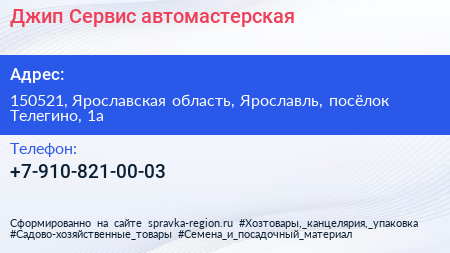 Джип Сервис, автомастерская по адресу 150521, Ярославская область, Ярославль, посёлок Телегино, 1а в дальнейшем Организация, размещена в следующих категориях: