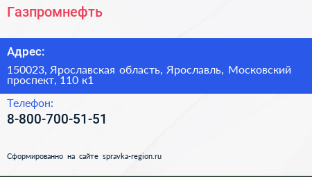Газпромнефть по адресу 150023, Ярославская область, Ярославль, Московский проспект, 110 к1 в дальнейшем Организация, размещена в следующих категориях: