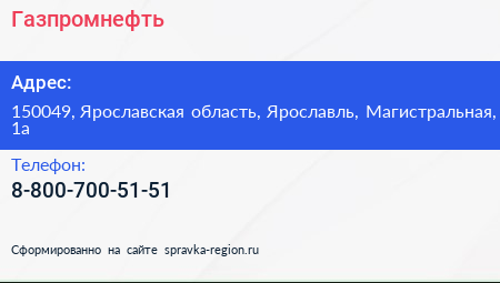 Газпромнефть по адресу 150049, Ярославская область, Ярославль, Магистральная, 1а в дальнейшем Организация, размещена в следующих категориях: