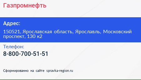 Газпромнефть по адресу 150521, Ярославская область, Ярославль, Московский проспект, 130 к2 в дальнейшем Организация, размещена в следующих категориях:
