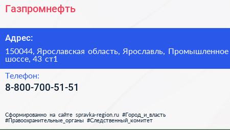 Газпромнефть по адресу 150044, Ярославская область, Ярославль, Промышленное шоссе, 43 ст1 в дальнейшем Организация, размещена в следующих категориях: