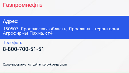 Газпромнефть по адресу 150507, Ярославская область, Ярославль, территория Агрофирмы Пахма, ст4 в дальнейшем Организация, размещена в следующих категориях: