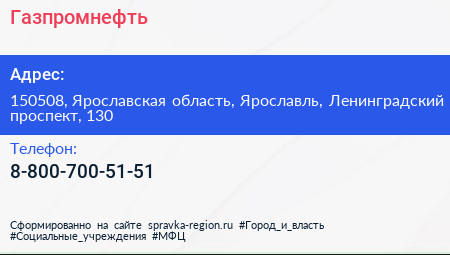 Газпромнефть по адресу 150508, Ярославская область, Ярославль, Ленинградский проспект, 130 в дальнейшем Организация, размещена в следующих категориях: