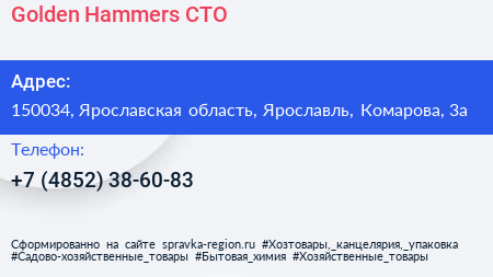 Golden Hammers, СТО по адресу 150034, Ярославская область, Ярославль, Комарова, 3а в дальнейшем Организация, размещена в следующих категориях: