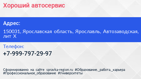 Хороший, автосервис по адресу 150031, Ярославская область, Ярославль, Автозаводская, лит Х в дальнейшем Организация, размещена в следующих категориях: