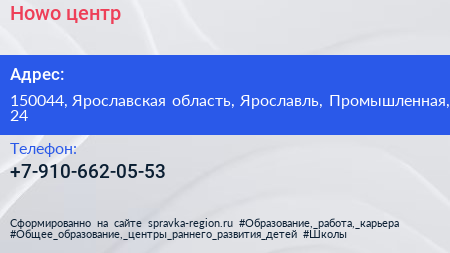 Howo-центр по адресу 150044, Ярославская область, Ярославль, Промышленная, 24 в дальнейшем Организация, размещена в следующих категориях: