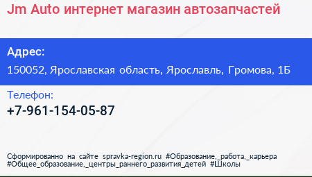 Jm Auto, интернет-магазин автозапчастей по адресу 150052, Ярославская область, Ярославль, Громова, 1Б в дальнейшем Организация, размещена в следующих категориях: