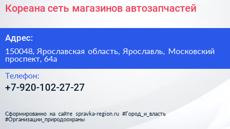 Кореана, сеть магазинов автозапчастей по адресу 150048, Ярославская область, Ярославль, Московский проспект, 64а в дальнейшем Организация, размещена в следующих категориях: