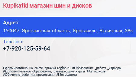 Kupikatki, магазин шин и дисков по адресу 150047, Ярославская область, Ярославль, Угличская, 39к в дальнейшем Организация, размещена в следующих категориях: