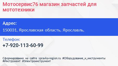 Мотосервис76, магазин запчастей для мототехники по адресу 150031, Ярославская область, Ярославль, в дальнейшем Организация, размещена в следующих категориях: