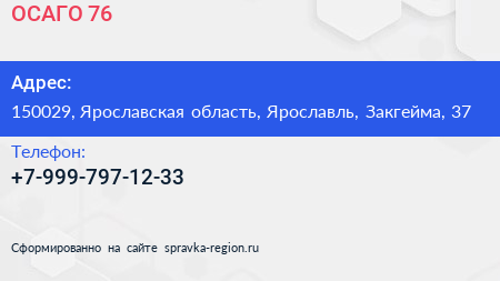 ОСАГО 76 по адресу 150029, Ярославская область, Ярославль, Закгейма, 37 в дальнейшем Организация, размещена в следующих категориях: